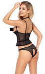 This isn't just a lingerie set; it's an experience designed to make you feel confident and beautiful. The Abierta Fina Longline Bra Set combines a stunning longline bra with matching crotchless panties. We've crafted both pieces from a soft, elastic lace that feels incredible against your skin. Elegant velvet stripes and details add a luxurious touch, creating a look that is both sensual and sophisticated.