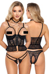 The matching lace panties are thoughtfully designed with stretch bands at the front, creating an alluring silhouette. The crotchless design is both cheeky and comfortable, and the removable stimulating chain allows you to customize your look to suit your mood. This set is the perfect blend of style, comfort, and versatility.