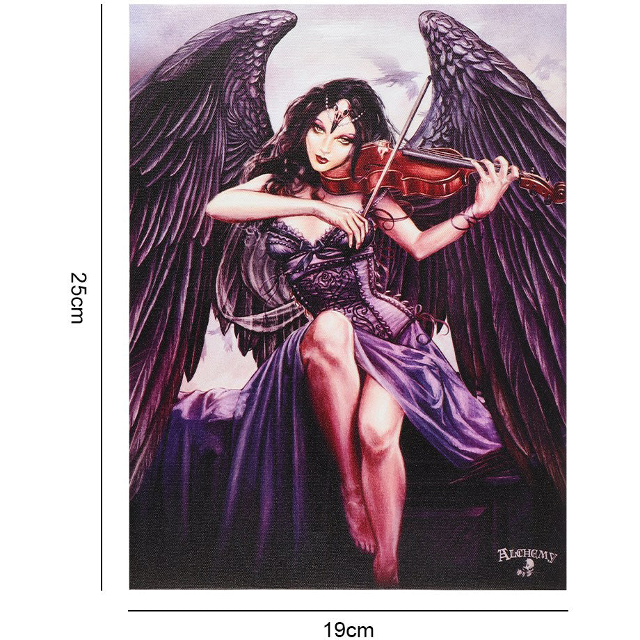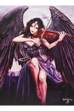 - The Raven-Winged Musician: The centerpiece of the artwork is a captivating woman with flowing raven wings, playing a violin. Her pose and expression exude a sense of otherworldly grace and the melody she creates seems to weave a magical spell.