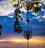 Framed upon the occultist's pentagram, Eliphas Levi's portrait and representation of the dualist, goat-headed deity symbolising the balance in everything, and notoriously known as the heretical subject of worship of the Knights Templar, in 1307 leading to their persecution and ultimately, their Friday 13'th downfall. Add your own unique style to any room, home or garden with these Alchemy designed hanging decorations/ wind chimes. We have designs to suit every alternative taste.