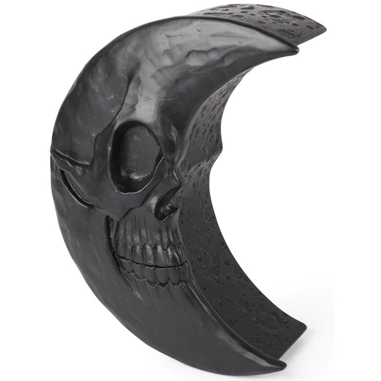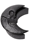 A moon shape casket with skull face. Hand finished, high quality poly resin.