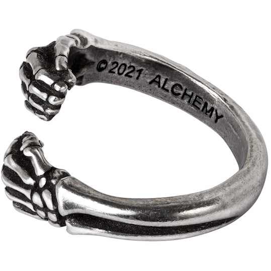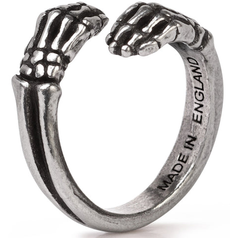 Fond memories of a once warm intimacy. The only way to get a constant and consistent hug is by wearing this beautiful ring! A stunning hand crafted pewter cuddle/ hug ring. With miniature Skeletal hands this ring the perfect token of love to bestow upon a loved one!