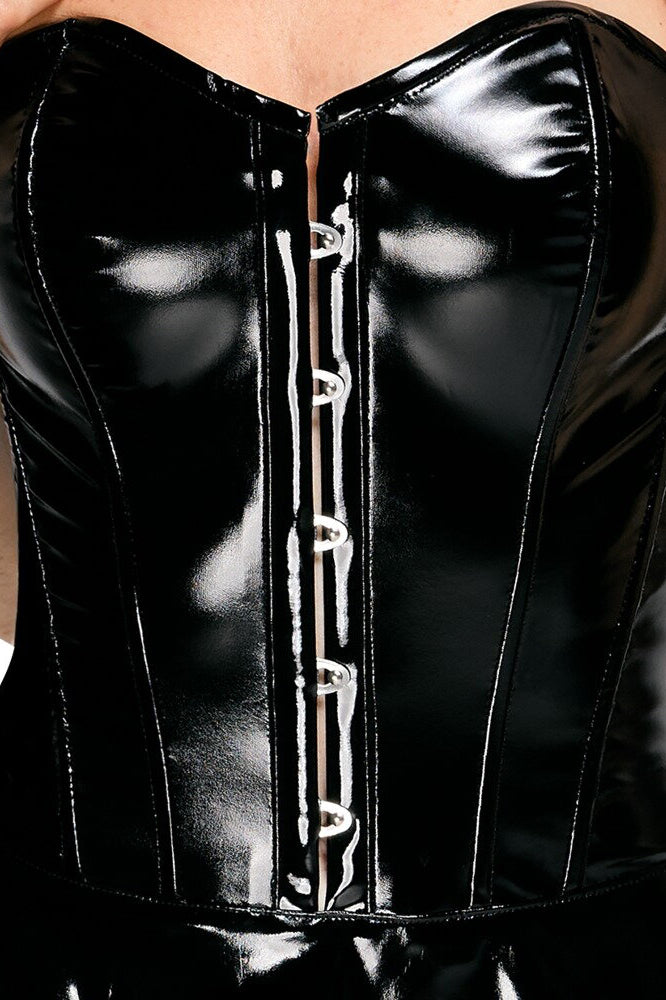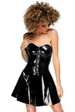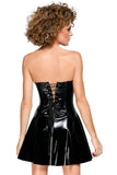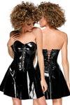 Embrace a seductive corset style with the Black Level Vinyl Corset Dress. This strapless tube mini dress is designed to highlight your figure, combining a structured, corset-style top with a playful flared skirt.
