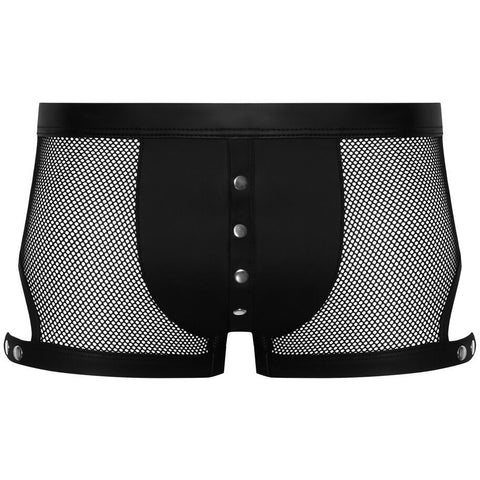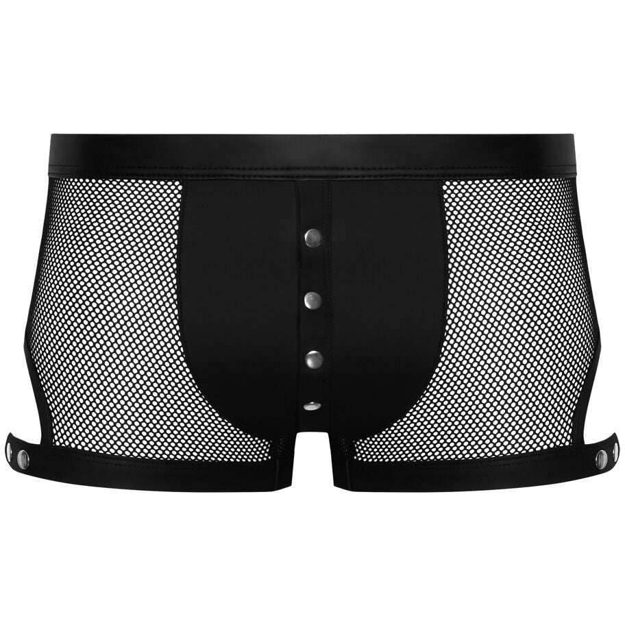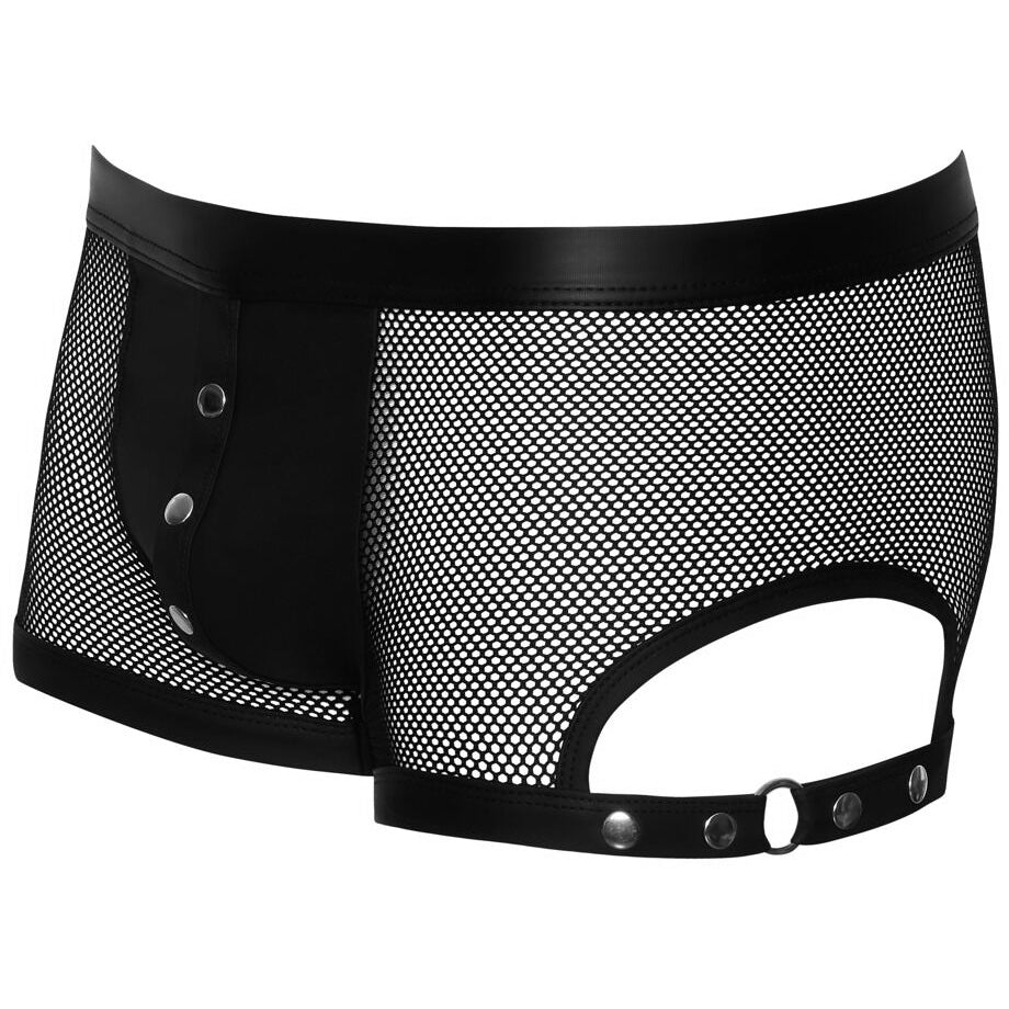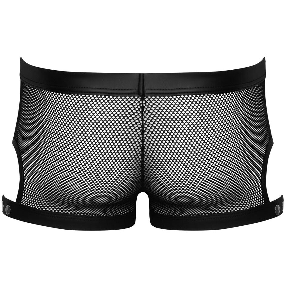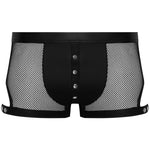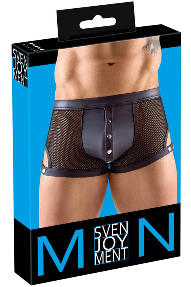 Revealing net with exciting details! The emphasising, black, net pants from Svenjoyment have an eye-catching row of press studs over the opaque matte look pouch. The fancy thigh straps have decorative studs, which can also be used to adjust the straps. The stretchy straps and waistband are also made out of matte look material. The net pants are soft and stretchy for a perfect and comfortable fit.