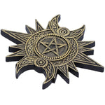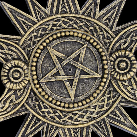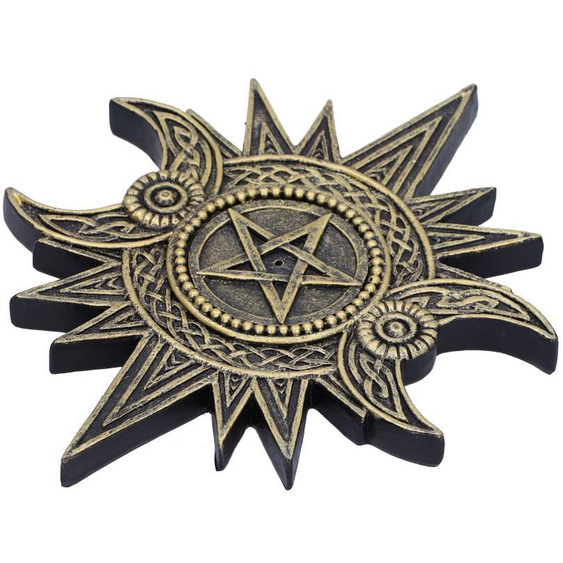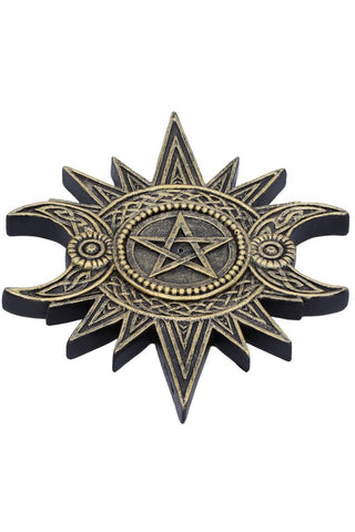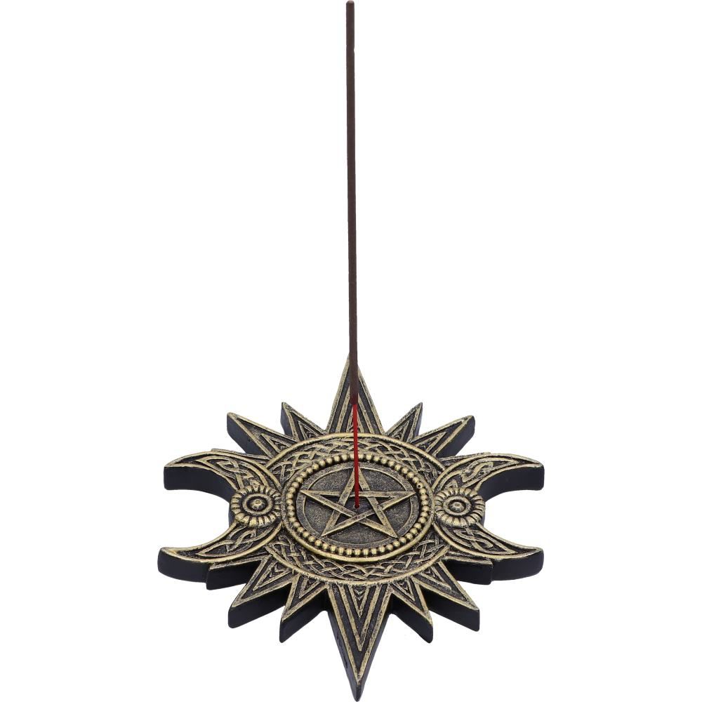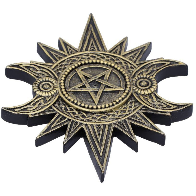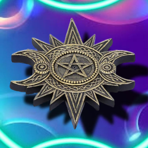 Cast in high-quality resin before being expertly hand-painted, this incense burner lies flat and features the triple moon symbol. In the middle sits a pentagram with a central hole to place your favourite incense stick. The perfect gift for any spiritual follower.
