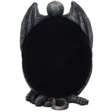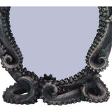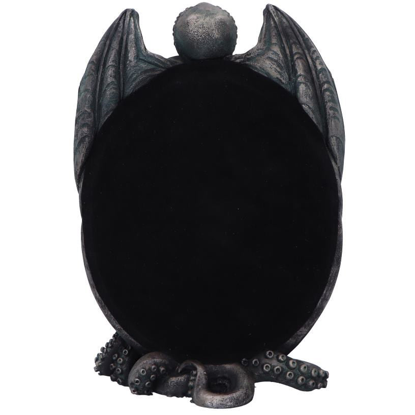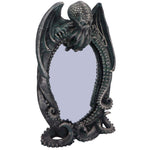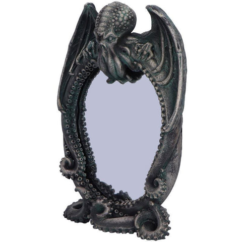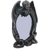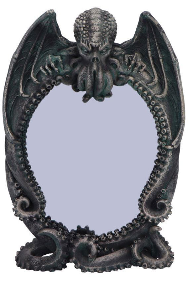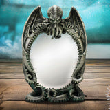 Introducing Cthulhu's Reflection, a striking gothic mirror that merges dark fantasy with practical decor. This piece captures the essence of Lovecraftian horror, featuring a central mirror that is dramatically framed by an intricate Cthulhu figure. The enigmatic entity peeks over the top of the mirror, its wings elegantly arching backward while its long, sinuous tentacles elegantly rest on the ground, ensuring the mirror stands upright and secure.
