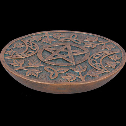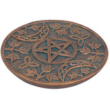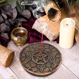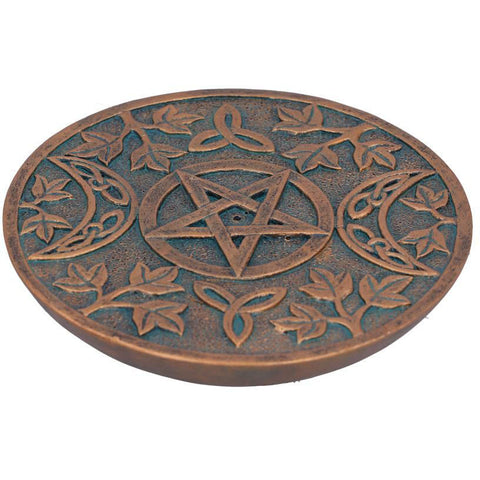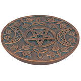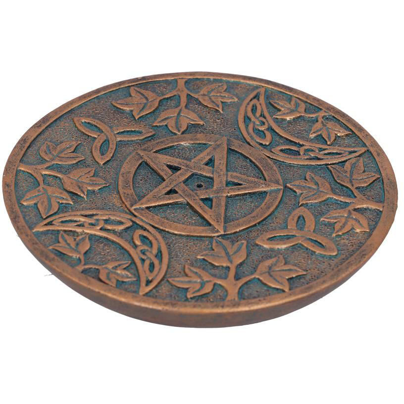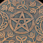 A small hole sits in the centre perfect for holding and burning your favourite incense sticks. The triple moon symbol sits across the centre along with a pentagram in the middle and wiccan symbology around the edges. Cast in the finest resin before being expertly hand-painted, this incense burner is ideal for adding a wiccan touch to any space.