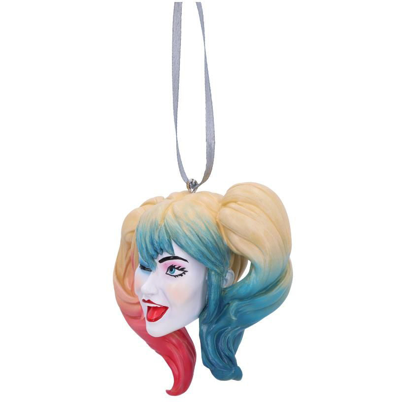 The multiverse would be a much less lively place without the hijinks and shenanigans of the former Dr. Harleen Quinzel, the one and only Clown Princess of Crime. With her iconic red and blue pigtails, she winks and sticks out her tongue in a cheeky manner. Cast in the finest resin before being expertly hand-painted this Harley Quinn Hanging Ornament is perfect for any DC or comic fan.