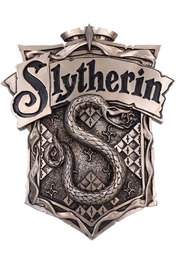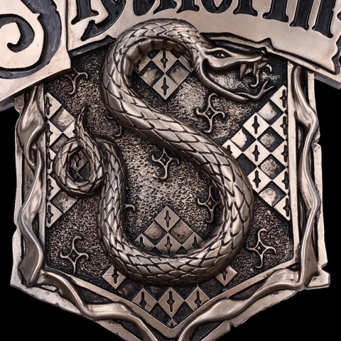 Discover the Wizarding World with this Officially Licensed bronze Harry Potter Slytherin Wall Plaque. Featuring a snake as the centre of this piece which is the emblematic animal of the Slytherin house, whose members are characterised by their cunning minds, ambition and pride. This Wall Plaque really will be a showstopper in any display. Cast in the finest resin before being given a bronze finish, this piece is perfect for any Witches, Wizards, or Muggles alike!