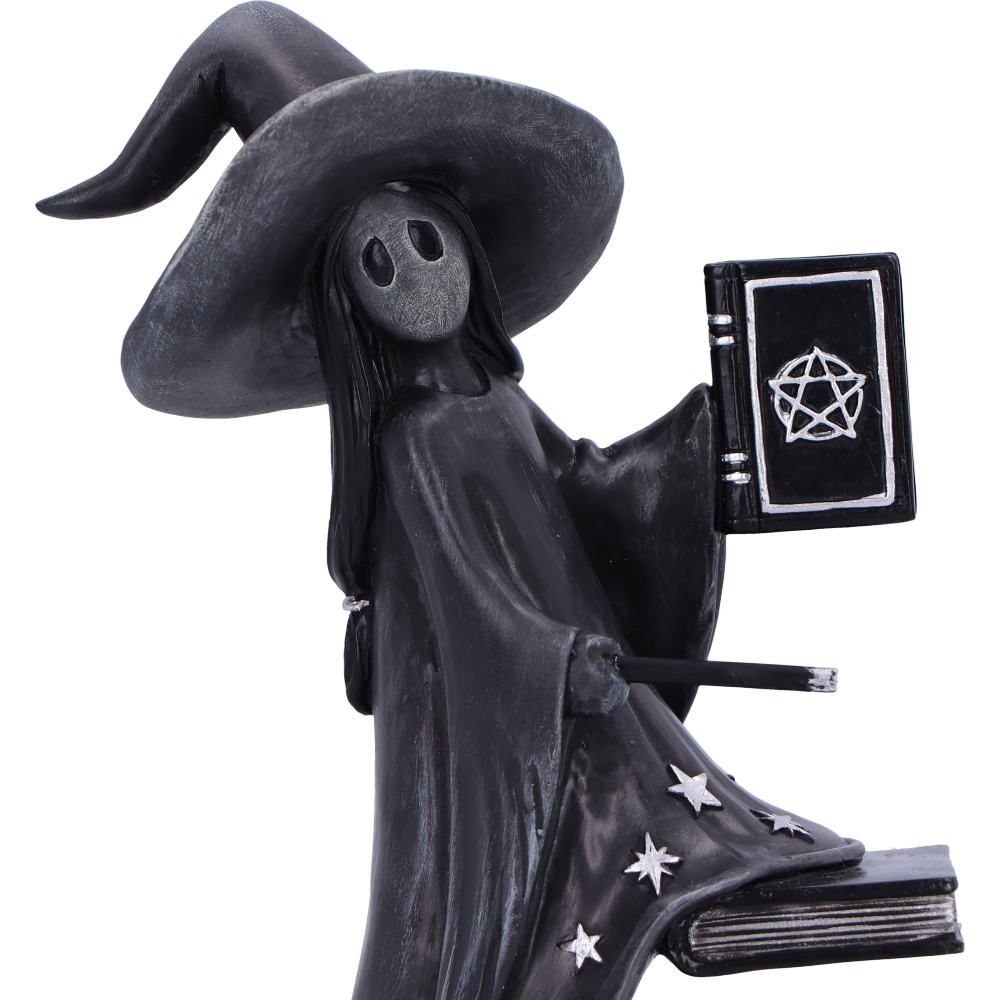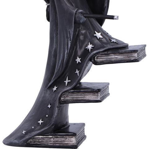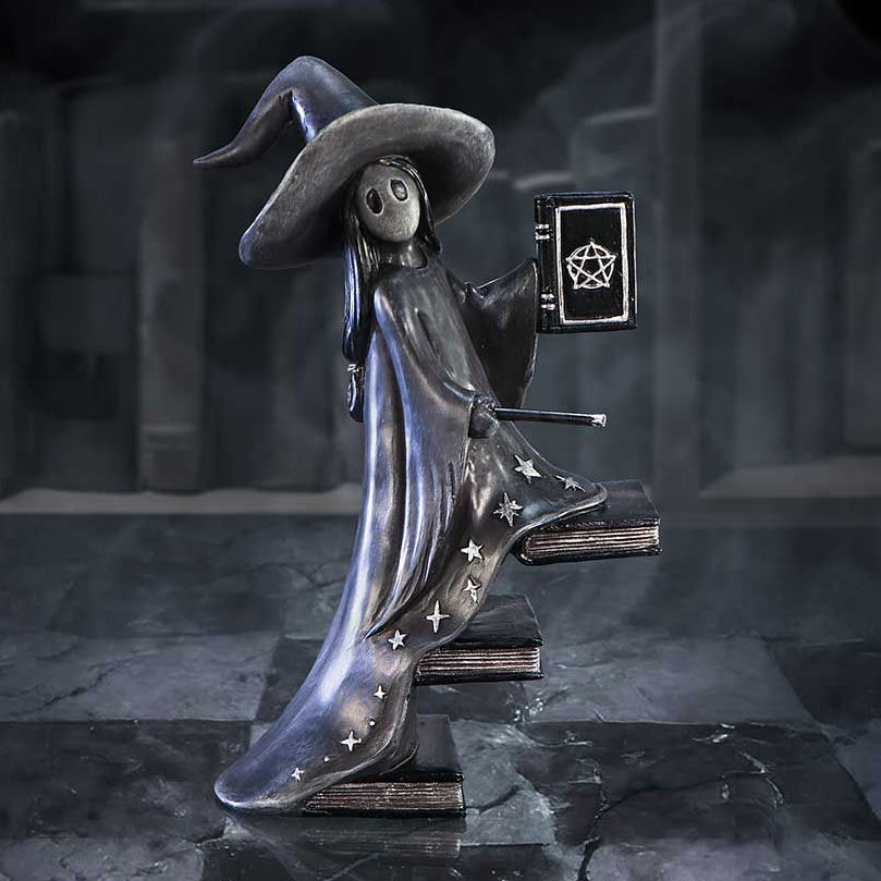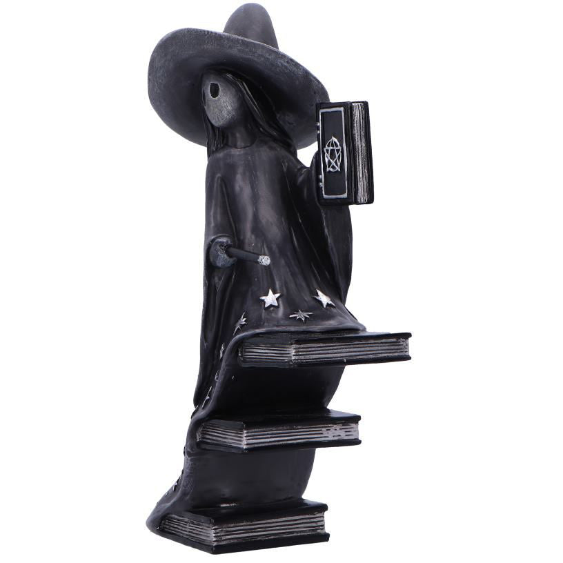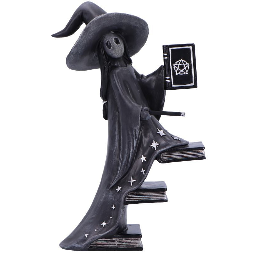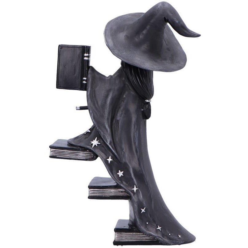 Bewitching Luna: A Spellbinding Black Witch Soul on a Staircase of Magic. Introducing Luna, a mesmerizing addition to Nemesis Now's Little Souls collection. This captivating figurine features a black witch soul gracefully ascending a floating staircase made entirely of spell books. Each book is intricately detailed, evoking a sense of wonder and magic that transports the viewer into a realm of enchantment.