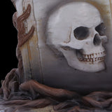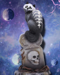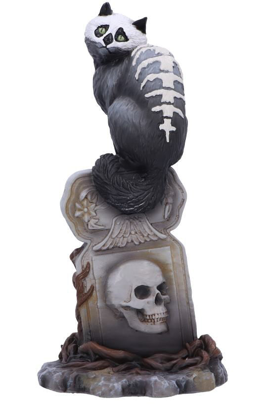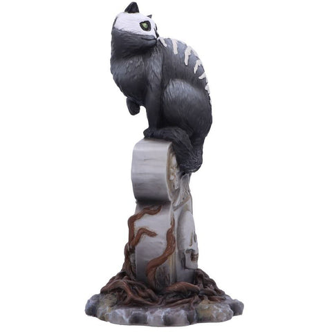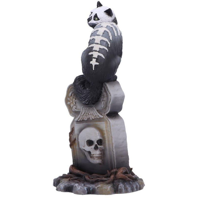 This incredibly detailed Skull Cat figurine comes from the complex mind of gothic and fantasy artist Martin Hanford. Perched atop a crooked gravestone, surrounded by winding roots, is a black feline with piercing green eyes and an exposed skull and spine. Made of the finest resin this haunting figurine has been carefully hand-painted, making it perfect for any alternative gift store or gothic collection.