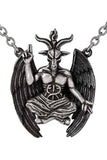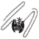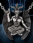 Feeling unknown, and you're all alone. Someone to hear your prayers, someone who cares, someone who's there. A superb Baphomet, in all its glory will adorn your person. This Baphomet is a handcrafted statement piece! With darkened pewter wings and polished pewter body.