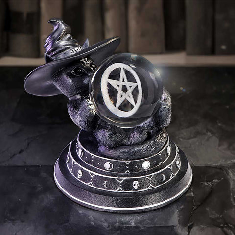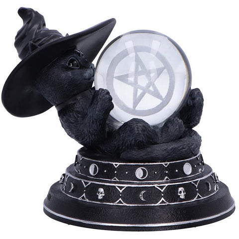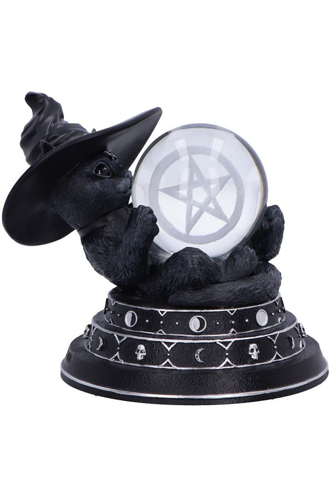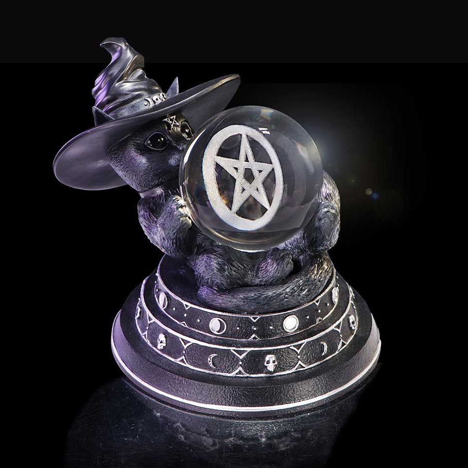 • Cult Cuties Purrah the witch cat with a pentagram etched glass ball.