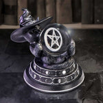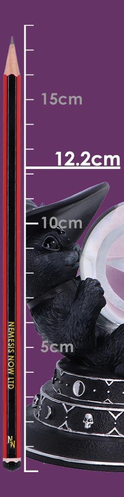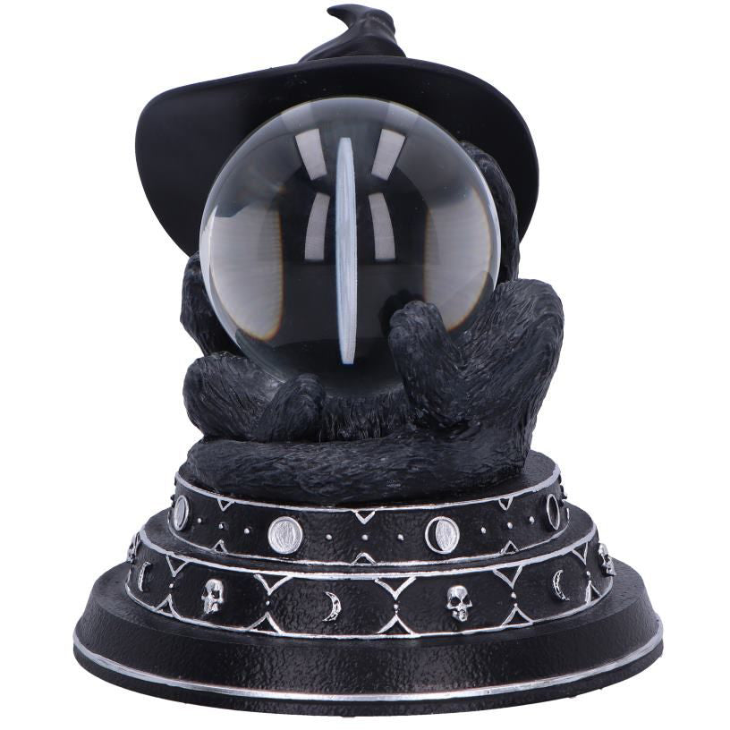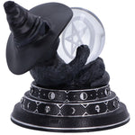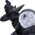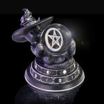 Handcrafted in high-quality resin, Purrah is intricately painted and features a removable glass ball for added charm. Her black eyes reveal a touch of darkness, and the design encapsulates the spirit of the witch, complete with a pointed hat and flowing cape.