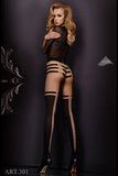 Embrace captivating intrigue with the Ballerina 301 Tights. These sleek black tights feature a contrasting skin-colored panel at the top, adorned with a daring strappy design that runs down the length of the thigh. Part of the captivating Hush Hush collection by Ballerina, these tights are perfect for the confident woman who wants to ignite her inner temptress.