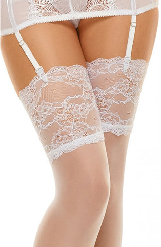 Add a delightful touch to your lingerie collection with the Beauty Night Romance Stockings. These classic 20 denier stockings feature a beautiful and wide lace top, providing a timeless and elegant addition to any look. The delicate lace is a charming detail, perfect for completing a romantic ensemble.
