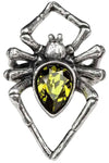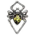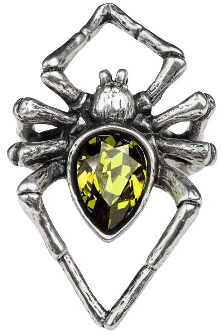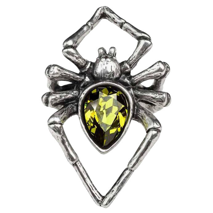 A giant spider, polished pewter ring with a large emerald green Swarovski crystal body.