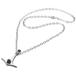 A single black Swarovski crystal adorns the rose flower, adding a touch of brilliance and sophistication to the design. The black hue of the crystal complements the gothic aesthetic of the pendant, while its sparkle catches the light, creating a mesmerizing effect.