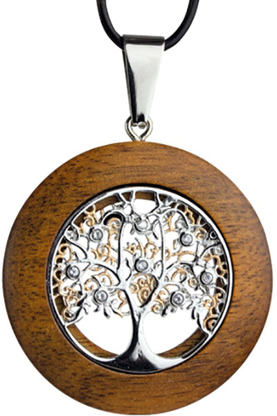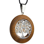 At the heart of this pendant lies a beautifully rendered Tree of Life, meticulously crafted from stainless steel and nestled within a simple yet elegant walnut wood frame. The warm, rich tones of the wood complement the sleek silver of the tree, creating a visually striking and harmonious balance. The pendant's minimalist design allows the Tree of Life to take center stage, making it a versatile accessory that effortlessly complements any style.