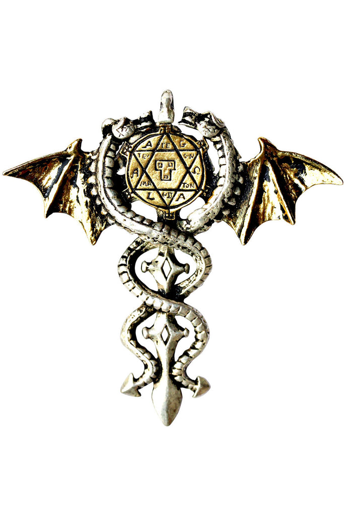 Centred around the Star of Solomon, inscribed with the Tetragrammaton, the Holy Hebrew Name of God, the Dragon Guardians serve as a reminder of the potency of this powerful, protective amulet. Their wings are picked out in hand applied gold plating as is the central Star of Solomon seal.