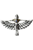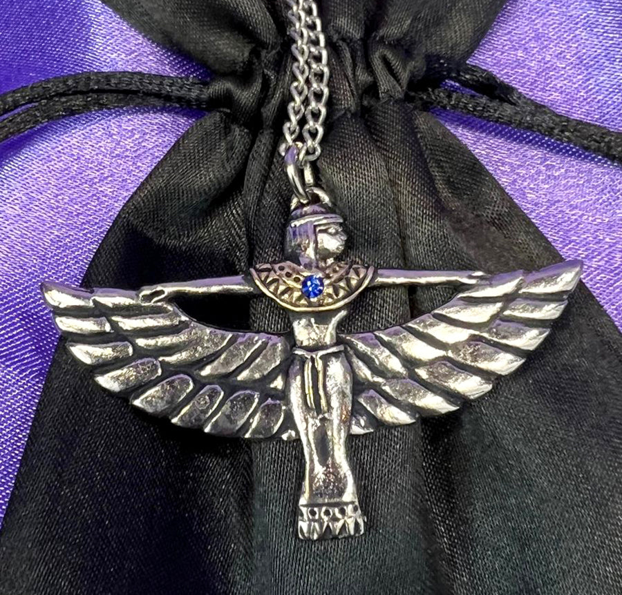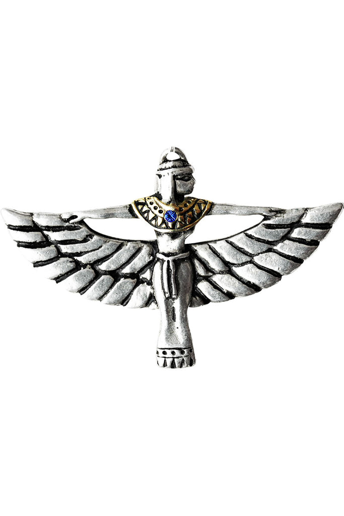 Magical Inspiration. This absolutely gorgeous representation of the famed Ancient Egyptian Goddess Isis is beautifully crafted in pewter and finished in gold and silver, set with a brightly sparkling crystal. She was worshipped as the patron of nature and magic and so is worn for Magical Inspiration.
