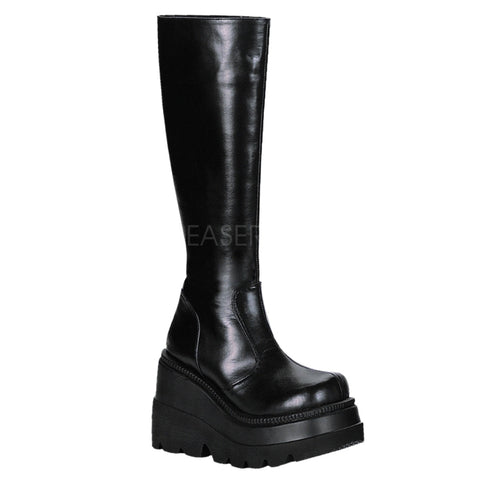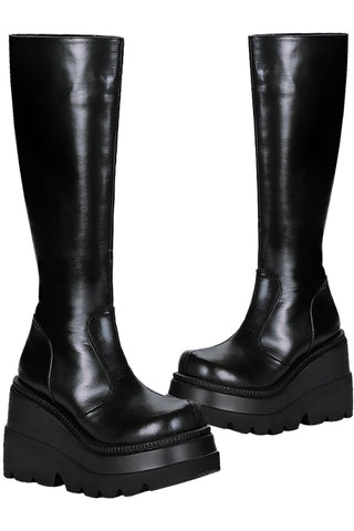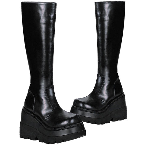 4 1/2" (11.4cm) Stacked Wedge Platform Knee High Boot Full Inner Side Zipper.