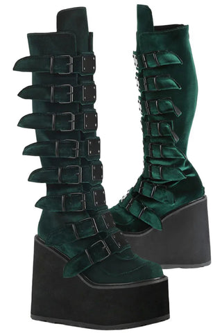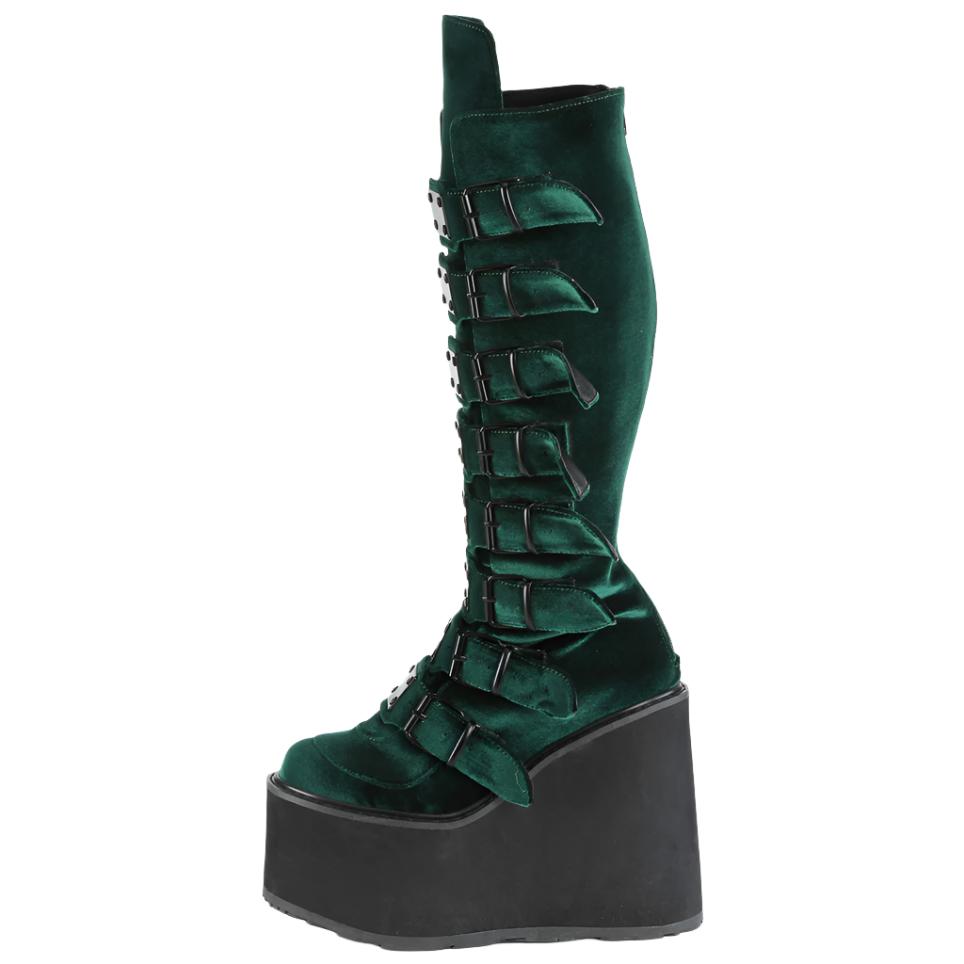 DemoniaCult SWING 815 Emerald Velvet Boots - Regal Rock Chic