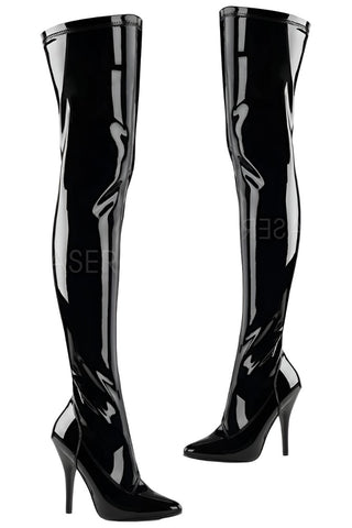 5" (12.7cm) Heel Plain Stretch Thigh Boot, Full Inner Side Zipper.