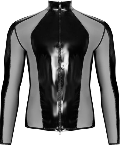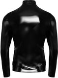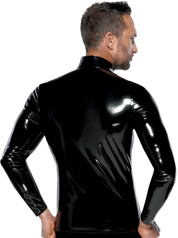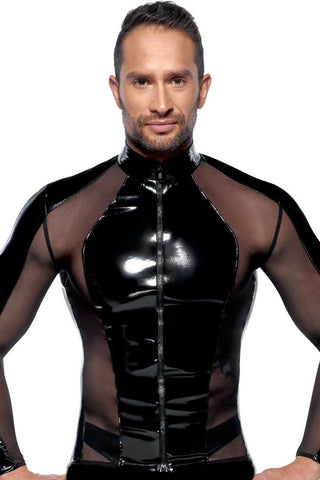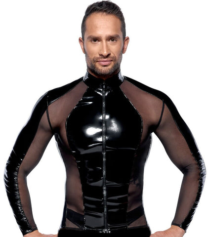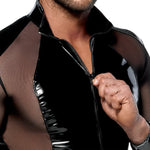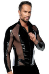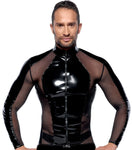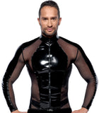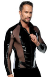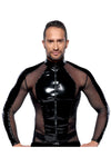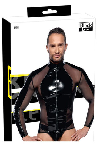 Make a powerful statement with the Black Level Vinyl and Mesh Clubbing Shirt. This long-sleeved shirt combines eye-catching, high-shine vinyl with exciting transparent mesh inserts, creating a look that is both modern and provocative.