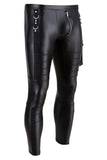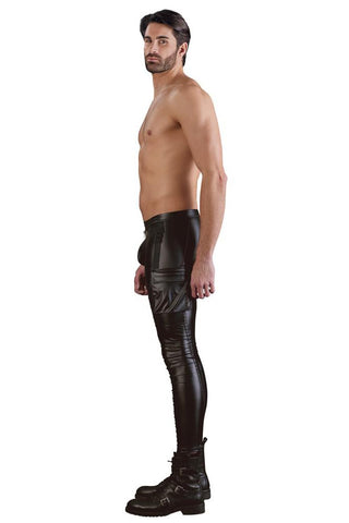 Cool biker look - freely combinable! Elegant slim-fit trousers in a matte look, big side pocket, stitched straps, rivets and rings. Pleasantly elastic and extremely comfortable to wear. The silver-coloured zip at the front completes the rock and roll appearance.
