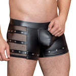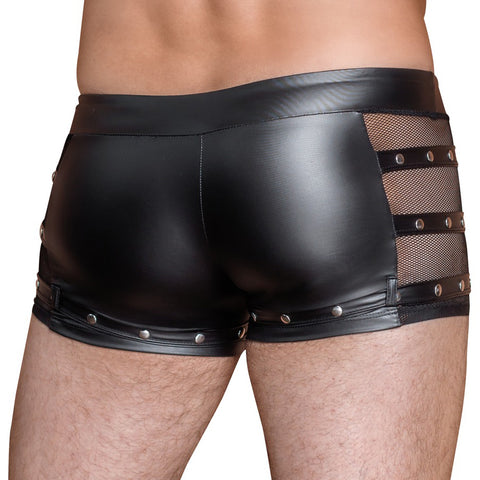 Striking and manly! The black pants form NEK are made out of emphasising matte look material and there is a padded zip at the front as well. There are transparent net inserts at either sides with straps over the top of them. There are studs on the straps as well. There is also a strap around each leg too. The pants are soft and stretchy which means that they are very comfortable to wear.