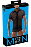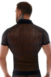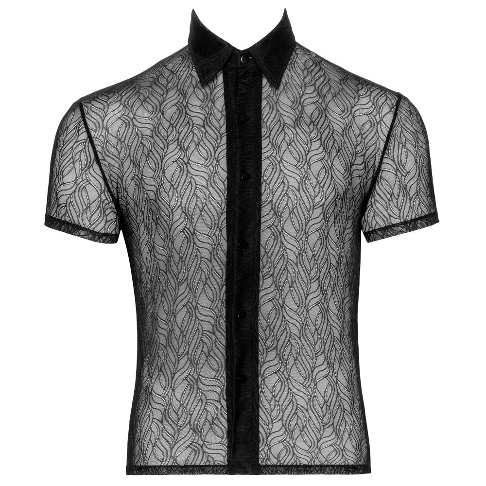 Stylish transparency! Tight, accentuating half-sleeved shirt from Svenjoyment made of fine soft stretch lace. With collar and full-length button placket in front.