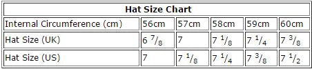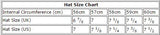 Available in sizes Small to XL - Please select a size below. Approx measurements of internal brim size are: