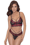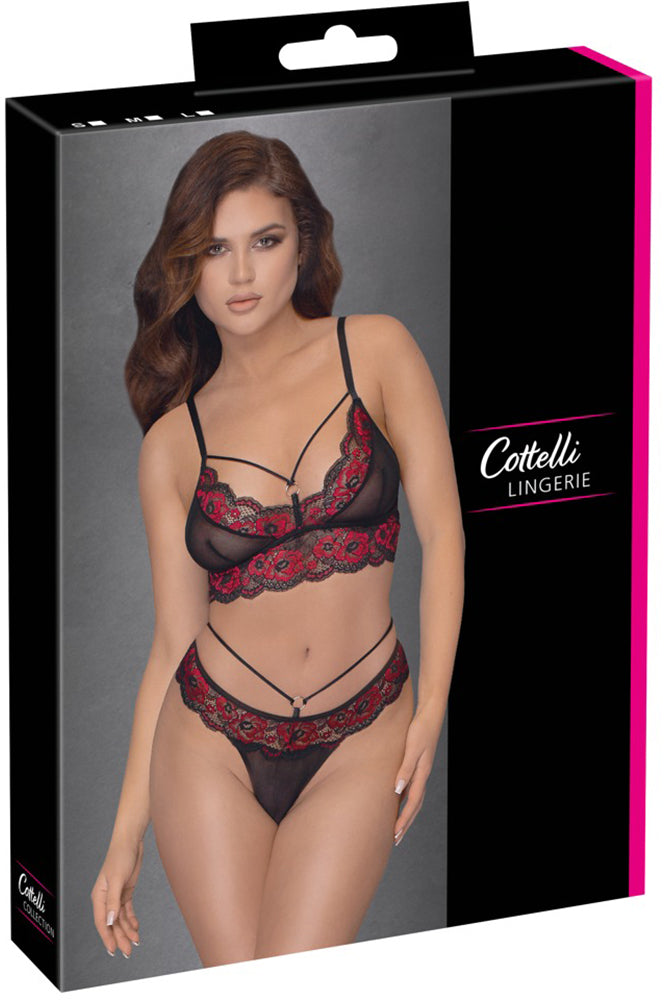 Lace in 2 different colours for double the amount of fun! This elegant set from von Cottelli LINGERIE stands out because of its beautiful lace and decorative straps that go over the breasts and cling to the waist. The wireless bra is extremely comfortable to wear thanks to the spandex. Perfect for hot nights – but it can also be worn during the day as well.
