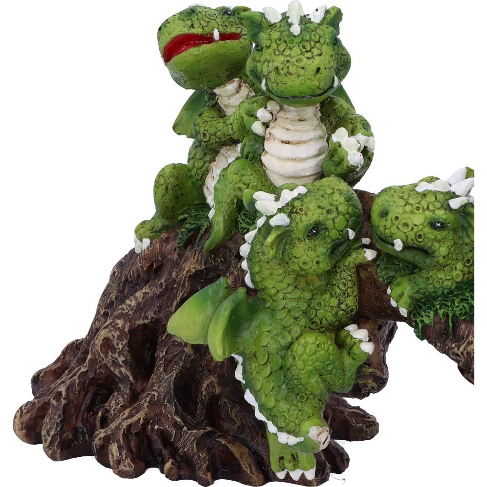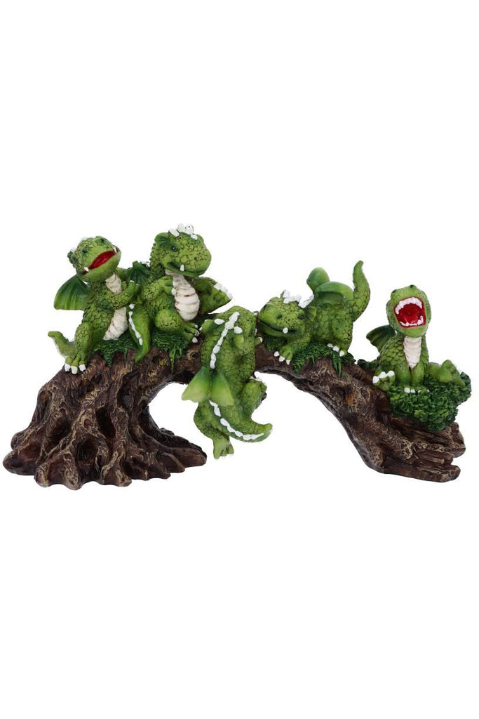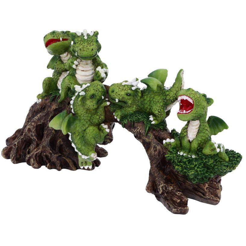 These daring Dragonlings rest on a large tree trunk perch. Deep Green in colour, these dragons have white highlights on their underbellies and clawed feet. Causing mischief wherever they go, these little beasts are cast in the finest resin before being hand-painted and will look perfect in any dragon enthusiasts collection.