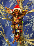 Featuring Mowhawk the Gremlin wrapped in Christmas lights.