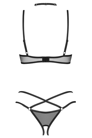Dive into a world of sensual seduction with the Donarella Underwire Bra and Open G-String Set by Obsessive. This exclusive set consists of a seductive underwire bra, a matching open G-string, and an elegant choker, creating an irresistible aura of eroticism and elegance together.