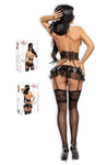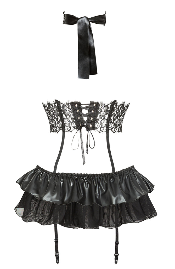 Exclusive Three-Piece Set: Includes a short corset, a skirt/garter belt, and a matching mask.