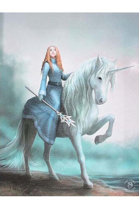 Renowned fantasy artist Anne Stokes ignites your imagination with this stunning canvas picture. Measuring 19cm x 25cm x 1.5cm, it showcases a beautiful maiden embarking on a journey with a majestic unicorn. The intricate details of the scene, from the flowing mane of the unicorn to the determined expression on the maiden's face, capture the essence of exploration and discovery.