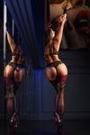 Introducing our Sheer Black Hold-Ups with Bordeaux Contrast Pattern and Lace Thigh Top – the epitome of seductive sophistication! These exquisite hold-ups feature a sultry bordeaux contrast pattern that adds a touch of intrigue and allure . With beautiful bordeaux lace thigh tops, exuding feminine elegance, they’re perfect for elevating your look with tantalising detail. Packaged in our sleek Black Secret branding. Note:- suspender belt not included.
