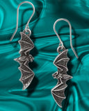 Flying bats, silent and motionless, anticipate the dusk and the final vestige of light to be extinguished by the sunset - so, the raptors may play... Creatures of the night frame your face! (sold as a pair)