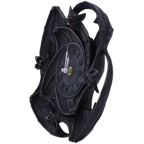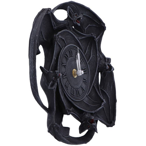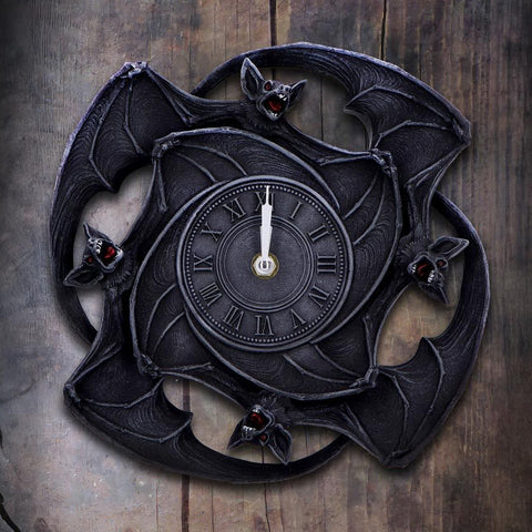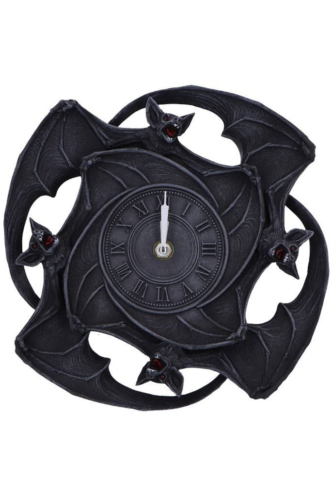 The Creatures of the Night Clock is a hauntingly beautiful wall clock that features four intricately designed spooky bats, each poised around the clock's outer rim. Their lifelike details add a sense of eerie movement, as if they could take flight at any moment. This unique design makes the clock not just a timepiece but a captivating piece of gothic art that will add a chilling charm to any space.