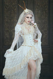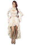 Burleska Valentina Steampunk Jacket, Cream Lace Tail Jacket / Dress Coat with front zip.