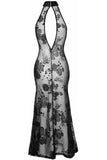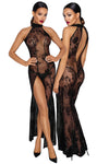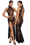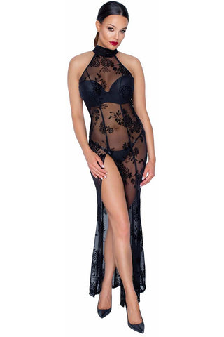 The design of the dress drapes beautifully over your curves, creating a timeless and elegant silhouette. The high neckline and halter-style top add a touch of sophisticated structure, while the long, flowing skirt with a daring thigh-high slit adds a touch of drama and playful allure. This dress masterfully balances elegance and sensuality, making it perfect for a variety of special occasions.