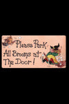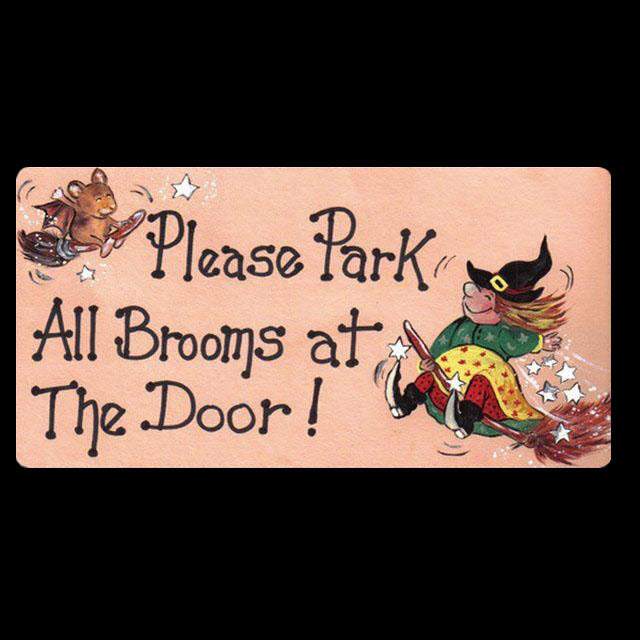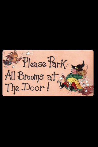 - Design: Smiley face with "Please Park All Brooms at the Door" text