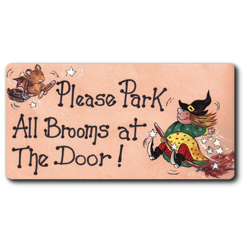 Please Park All Brooms at the Door Smiley Fridge Magnet: A Whimsical Witchy Welcome