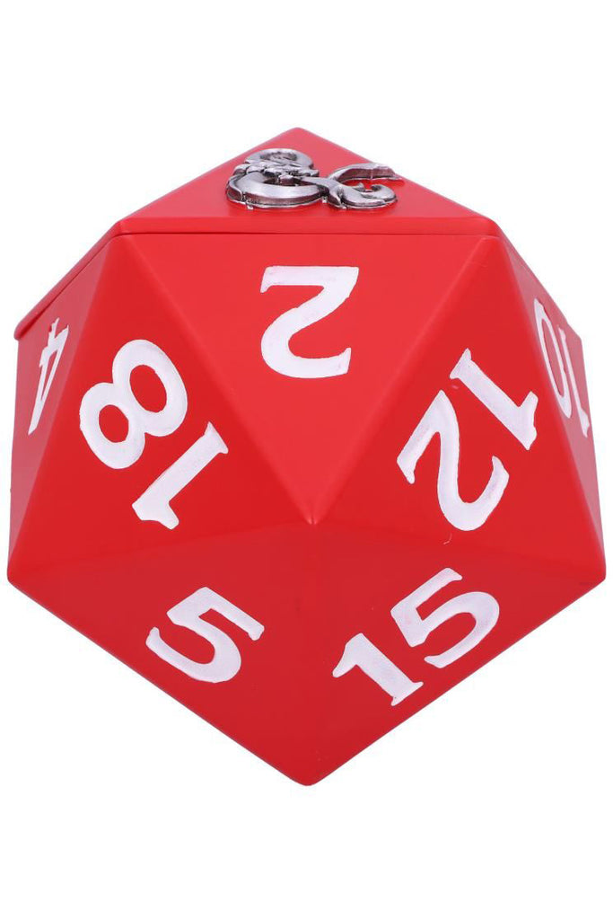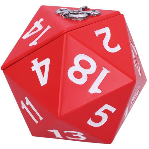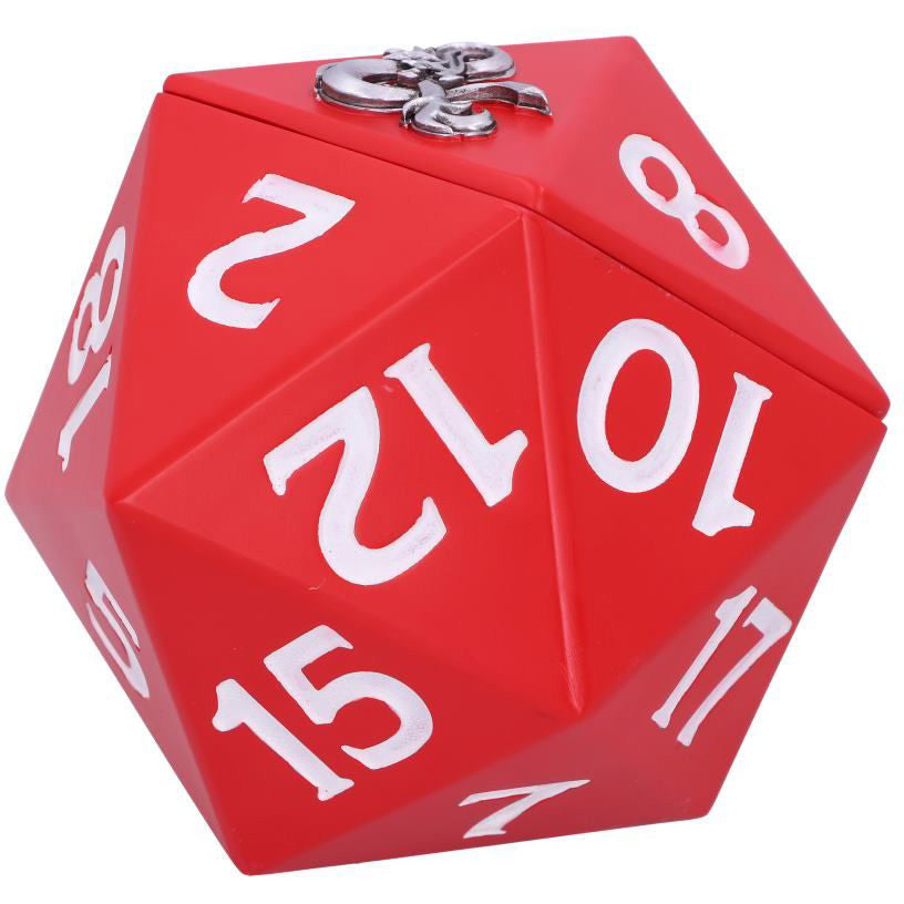 In the legendary fantasy role-playing game Dungeons & Dragons, the D20 is the signature die in all the game, it's used any time you want to attempt an action, the result will determine whether you have been successful or not often resulting in continued life, or even death. Nemesis Now's D&D Dice Box is shaped after the infamous icosahedron die, decorated in candy red. Lifting the lid of the die reveals the hold where you can store your dice decorated with the signature ampersand logo.