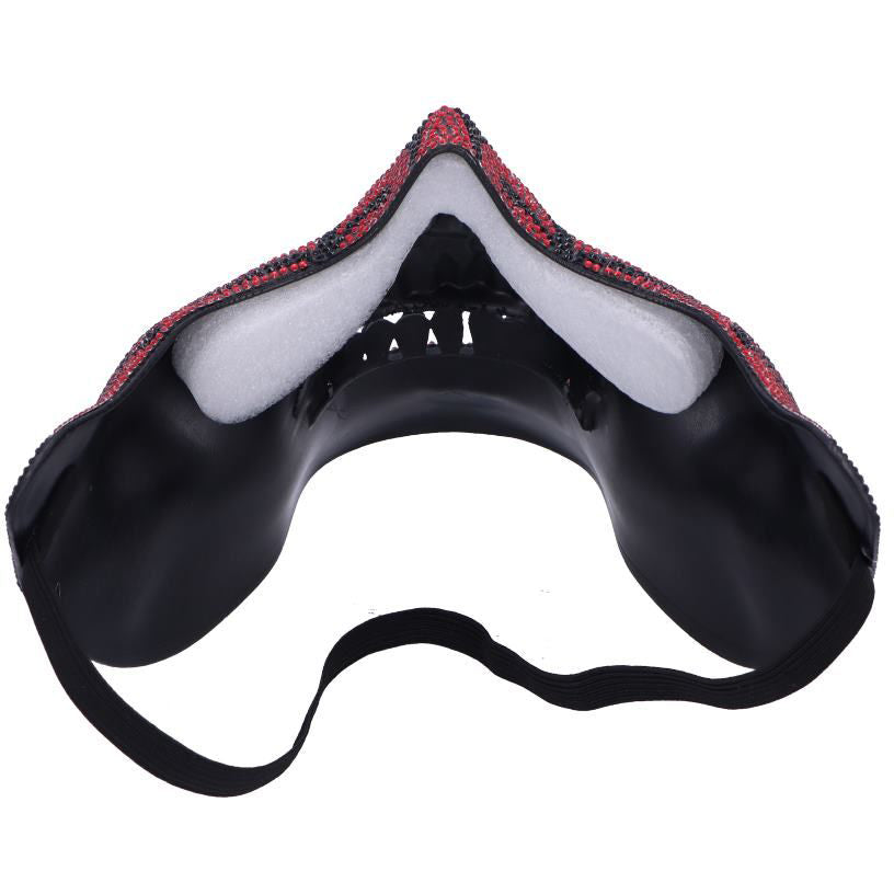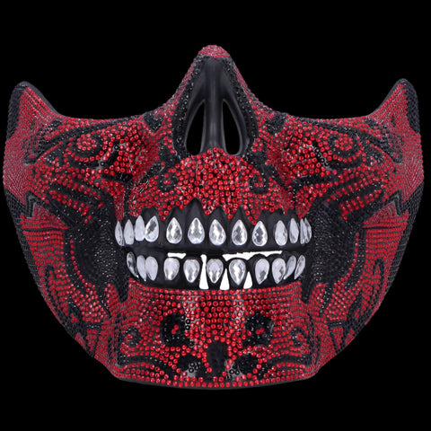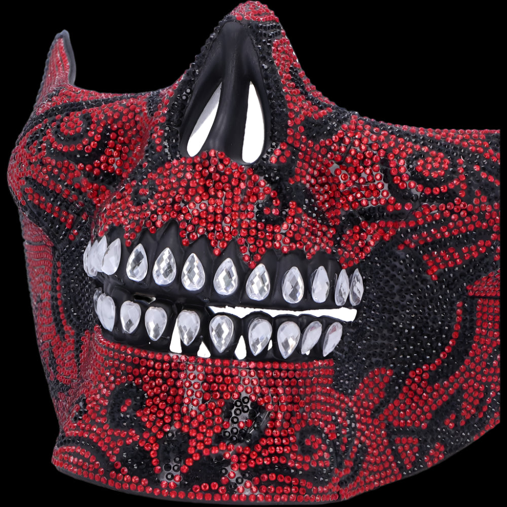Fancy Dress Jewelled Masquerade Mask Cosplay (Red). Red Jewelled Masquerade Mask – fierce, opulent, and made to captivate. A striking statement accessory that fuses gothic drama with high-impact elegance. Designed in the bold silhouette of a skull, this piece turns heads with its lavish red and black rhinestone detailing, delivering both intensity and sophistication.