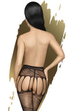 These tights will leave no excused on the table: The tight-fitting, fine-meshed fabric emphasizes the legs and the elegant pattern of crossed stripes also tantalize. The sexy suspender look and strap details also draw attention to your hips and buttocks in a very flattering way.