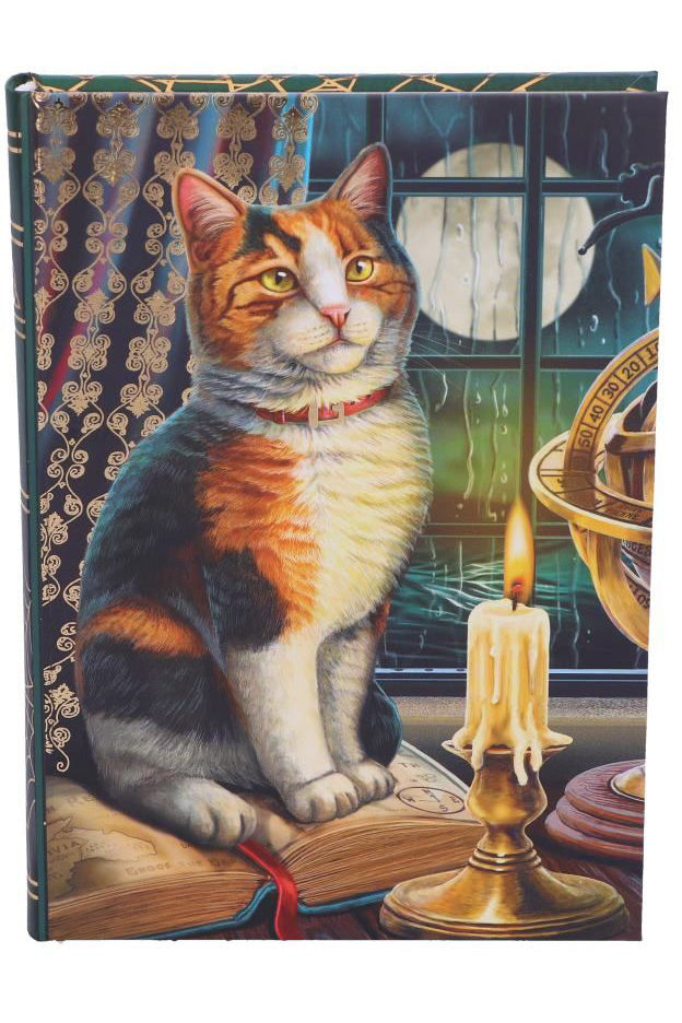 From the enchanting imagination of world-renowned artist Lisa Parker, this Adventure Awaits journal is perfect for keeping all your secrets safe. An inquisitive Calico feline sits atop an antiqued atlas, awaiting its next voyage. Through the window, the seas look treacherous but with the help of their armillary sphere and the bright glow of the moon, their journey should not be too perilous. Inside the journal, high-quality plain paper gives you the freedom to record your magic and dreams unimpeded.